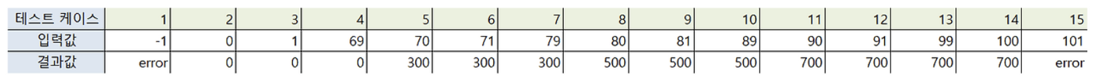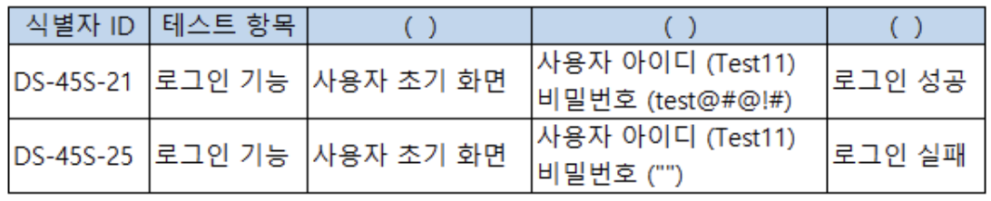 순서대로 : 테스트 조건 - 테스트 데이터 - 예상 결과