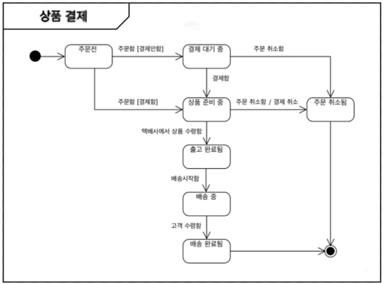 상태 머신 다이어그램 : 객체의 생명주기를 표현 |