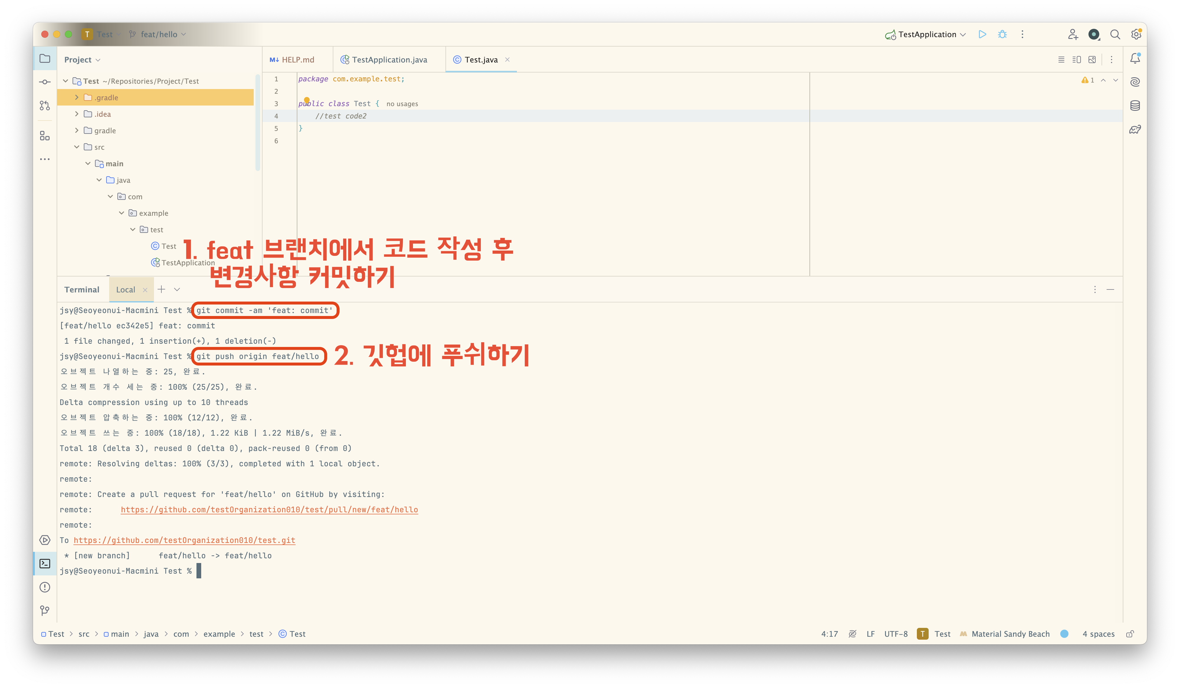 1️⃣ feat 브랜치에서 코드 작성 후 변경사항 커밋하기