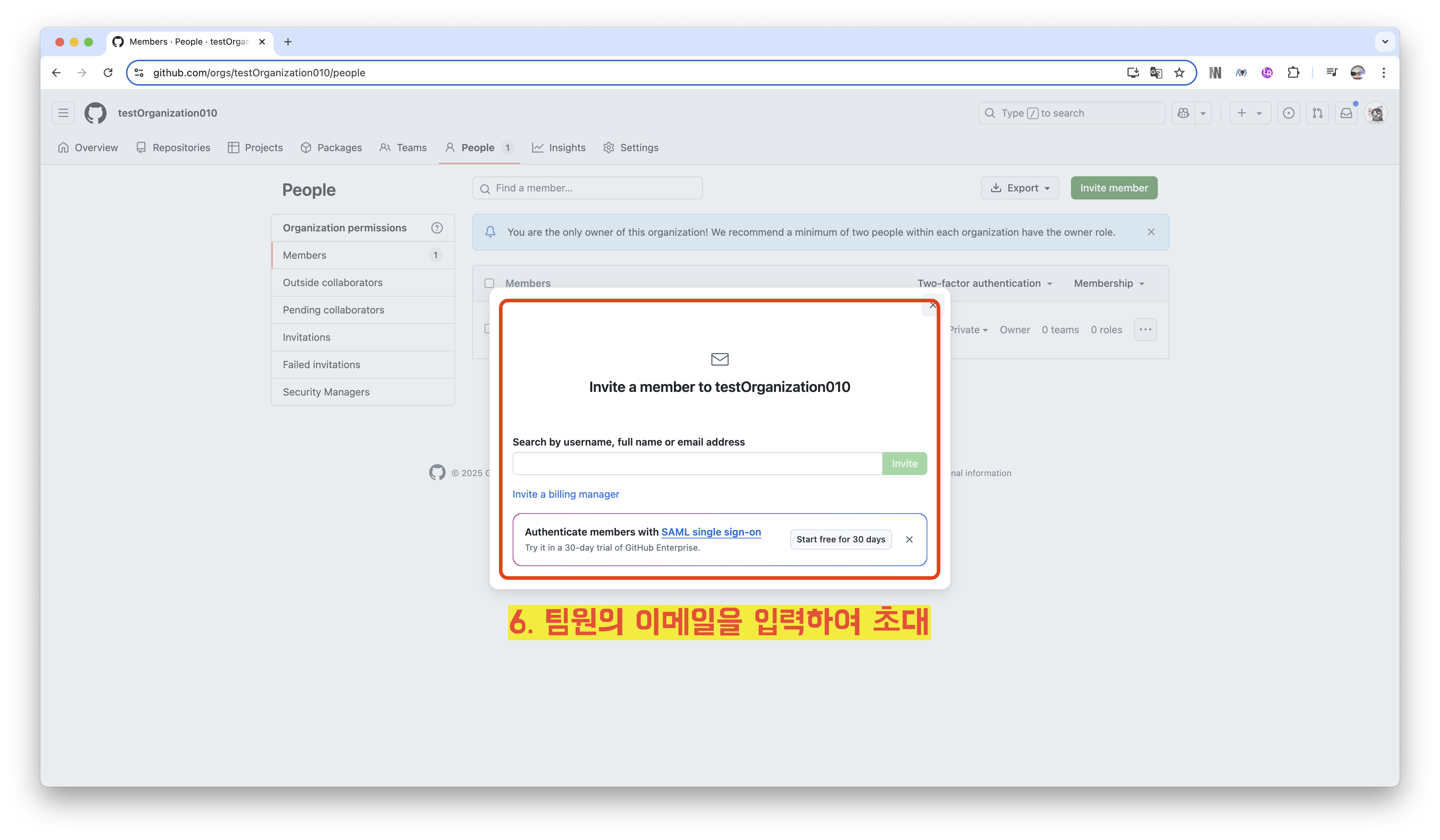 🔍 팀장 - Orgainzation 생성하기