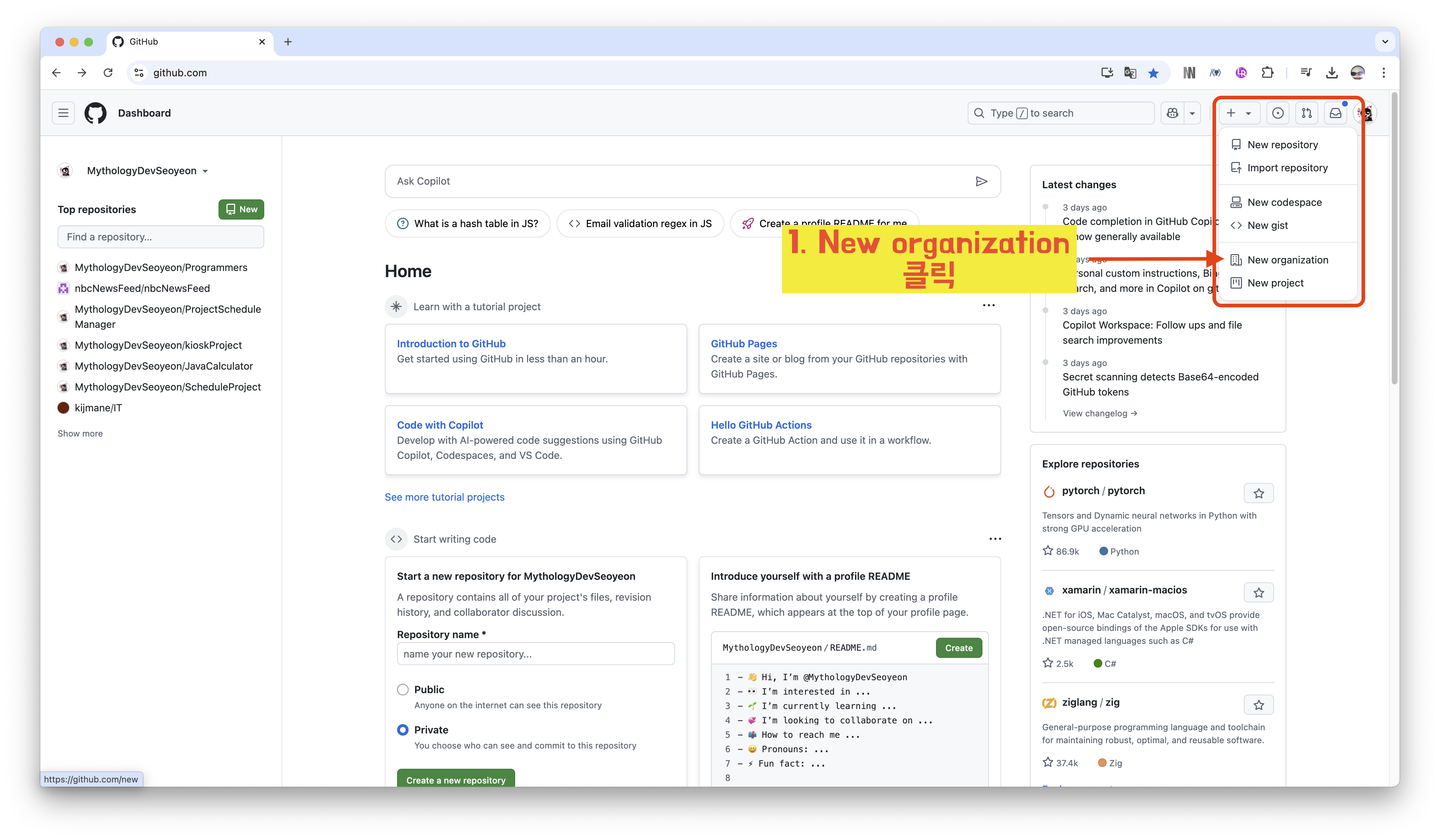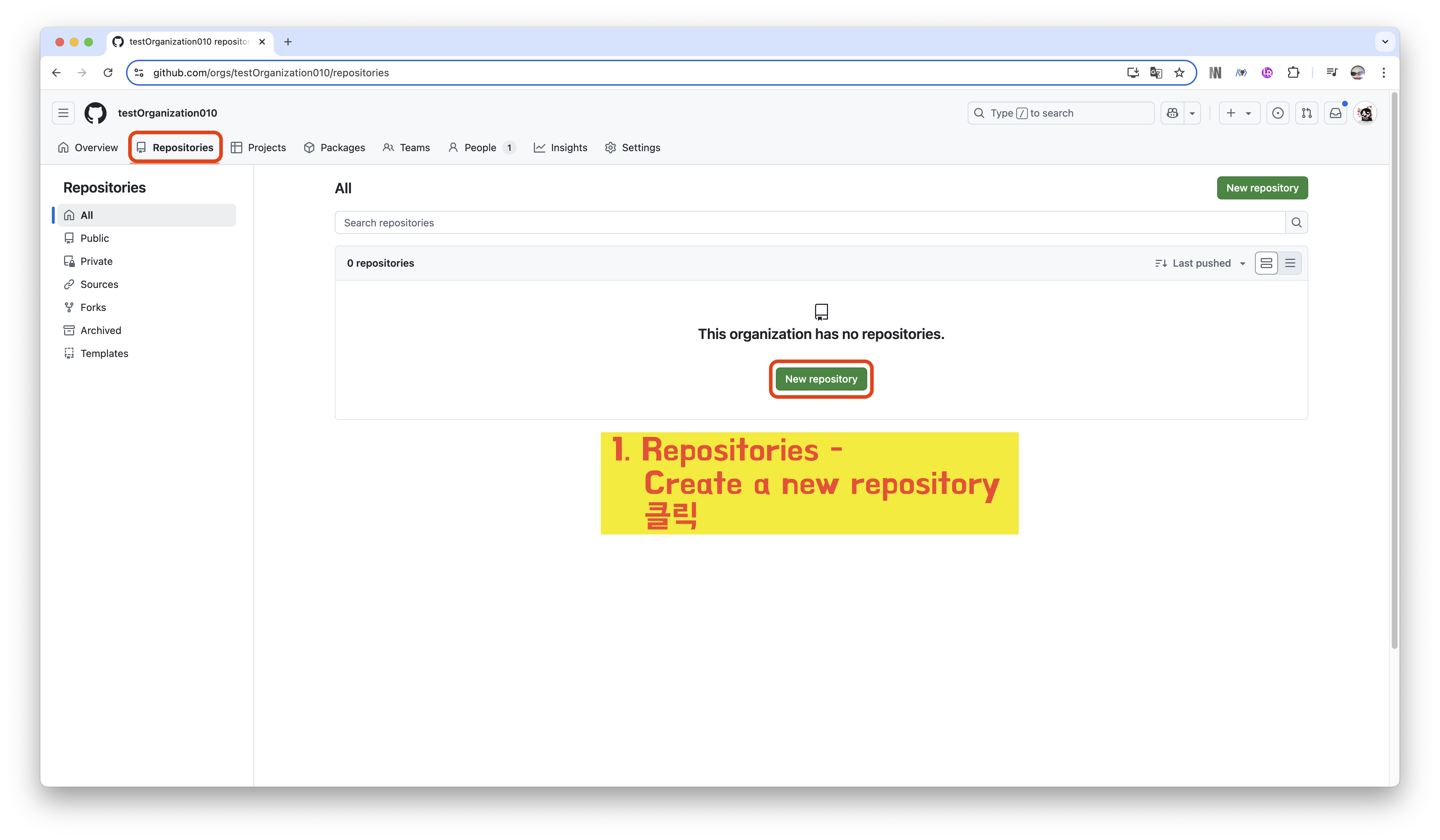 1️⃣ New Organization 클릭