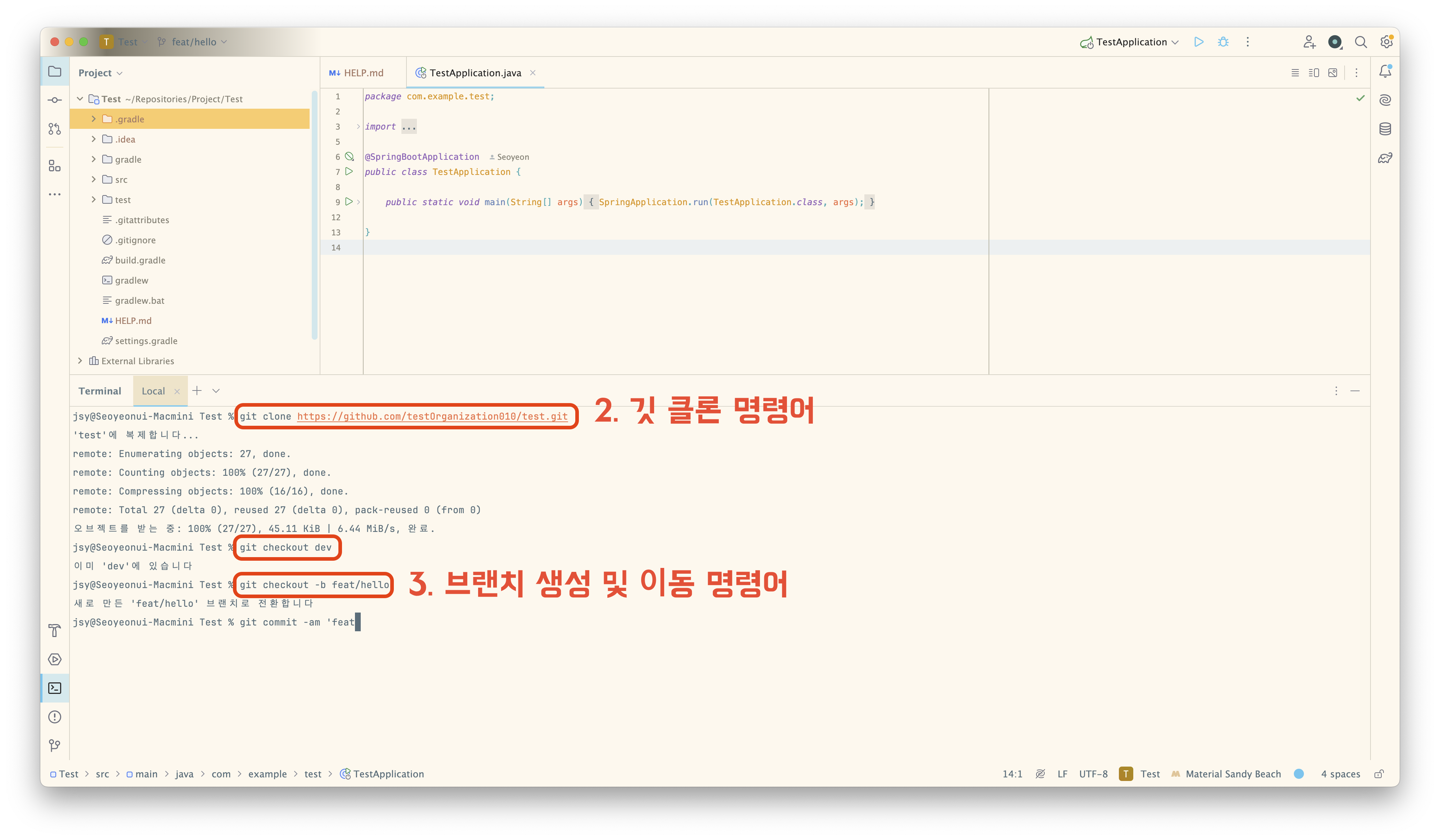3️⃣ feature 브랜치 생성 명령어 입력