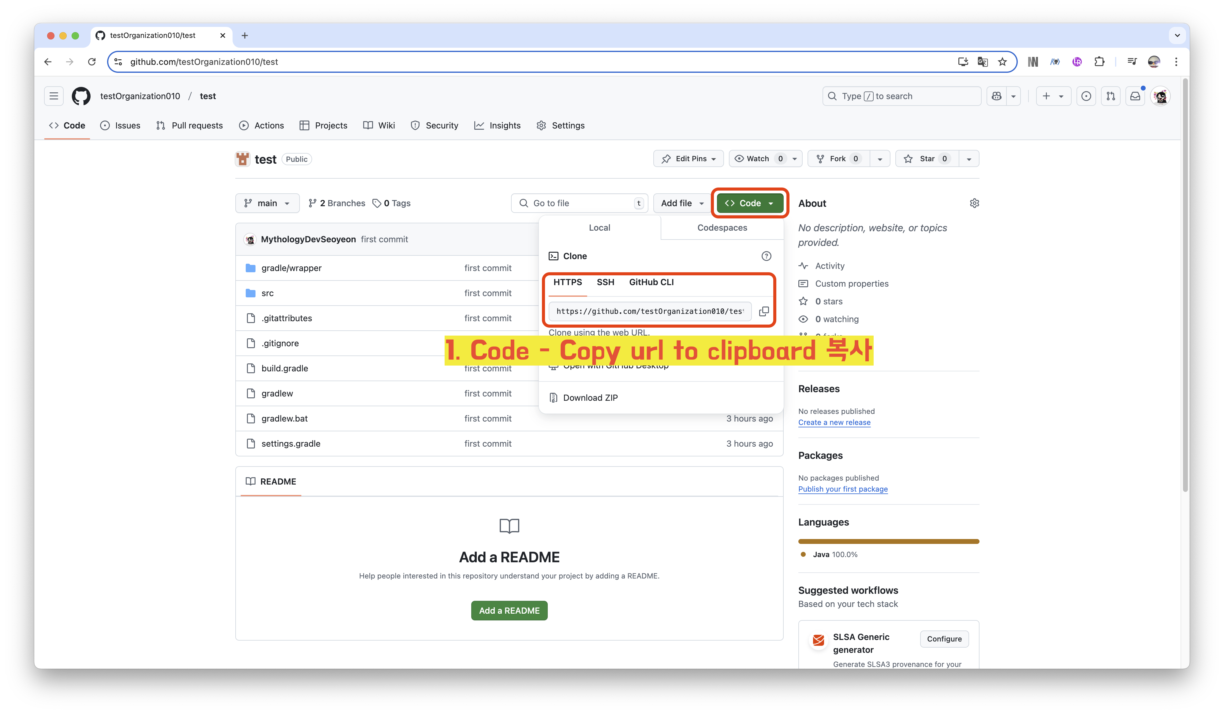 git clone https://github.com/testOrganization010/test.git