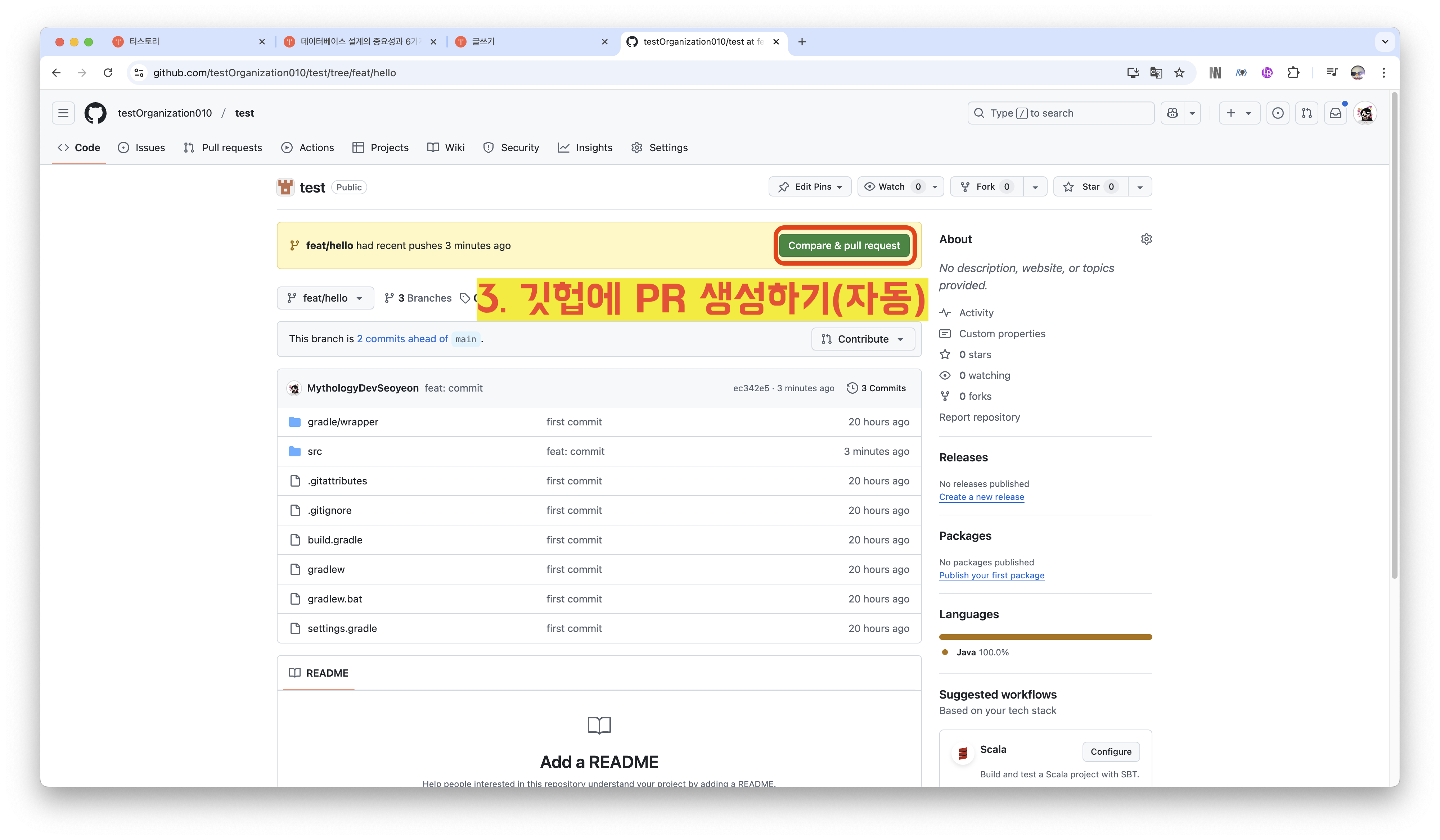 3️⃣ 깃허브에서 PR 생성하기 (자동)