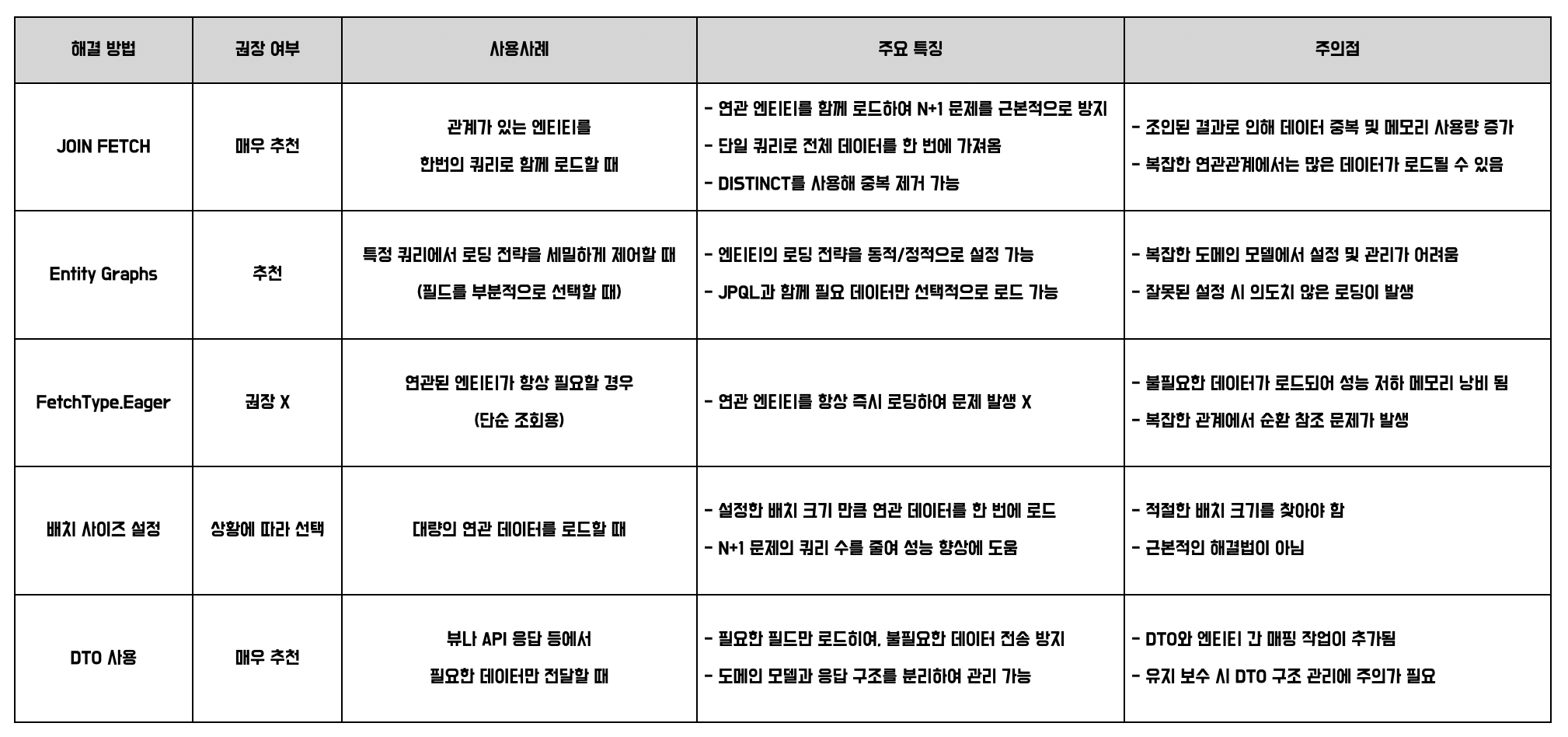 추가적인 지연 로딩(Lazy Loading) 쿼리를 줄여 N+1문제를 예방할 수 있습니다.