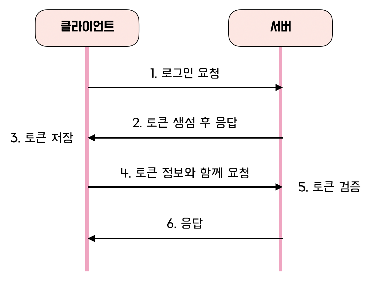 클라이언트가 토큰을 보관하고 요청 시 전송 → 서버는 무상태성 유지
