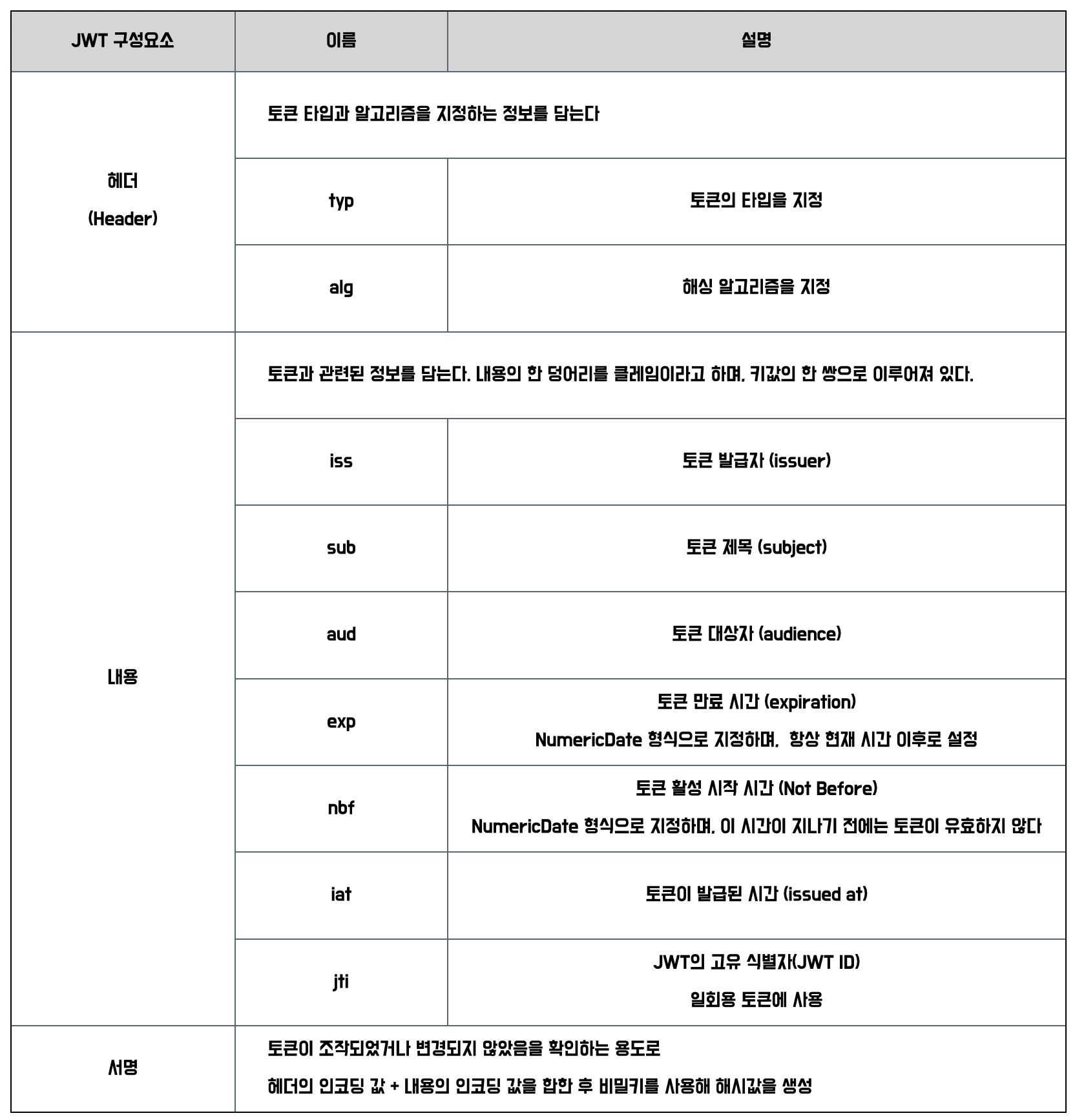 .을 기준으로, 헤더(header), 내용(payload), 서명(signature) 으로 이루어져 있다.
