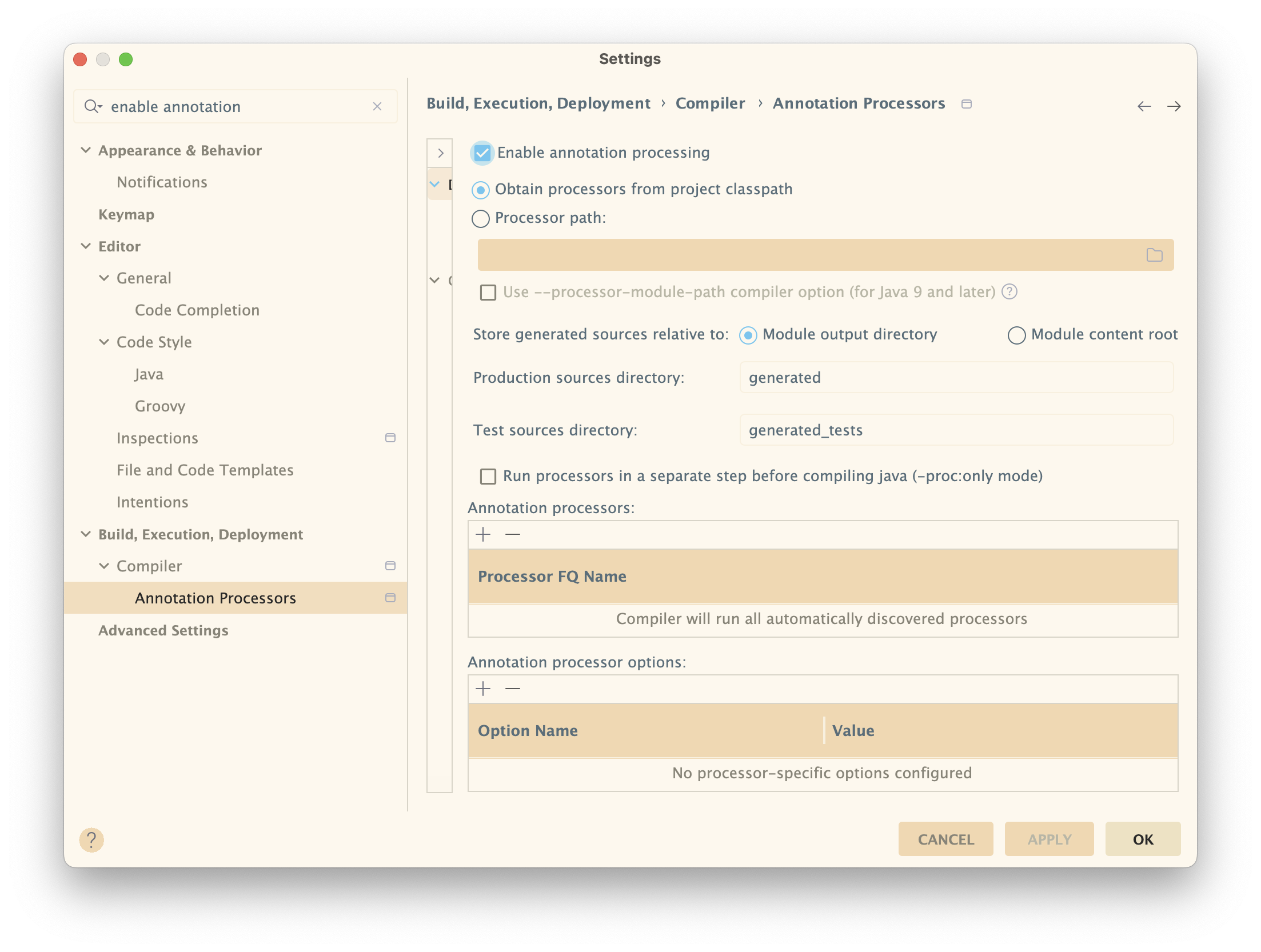 설정 - Annotation Processors - Enable annotation processing