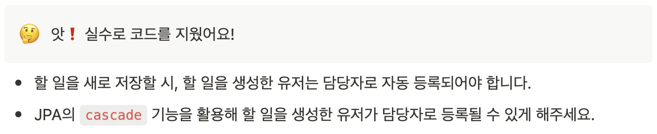 이 문제를 해결 하기 위해서 Todo 엔티티의 managers필드에 `cascade = CascadeType.PERSIST`를 적용하였습니다.