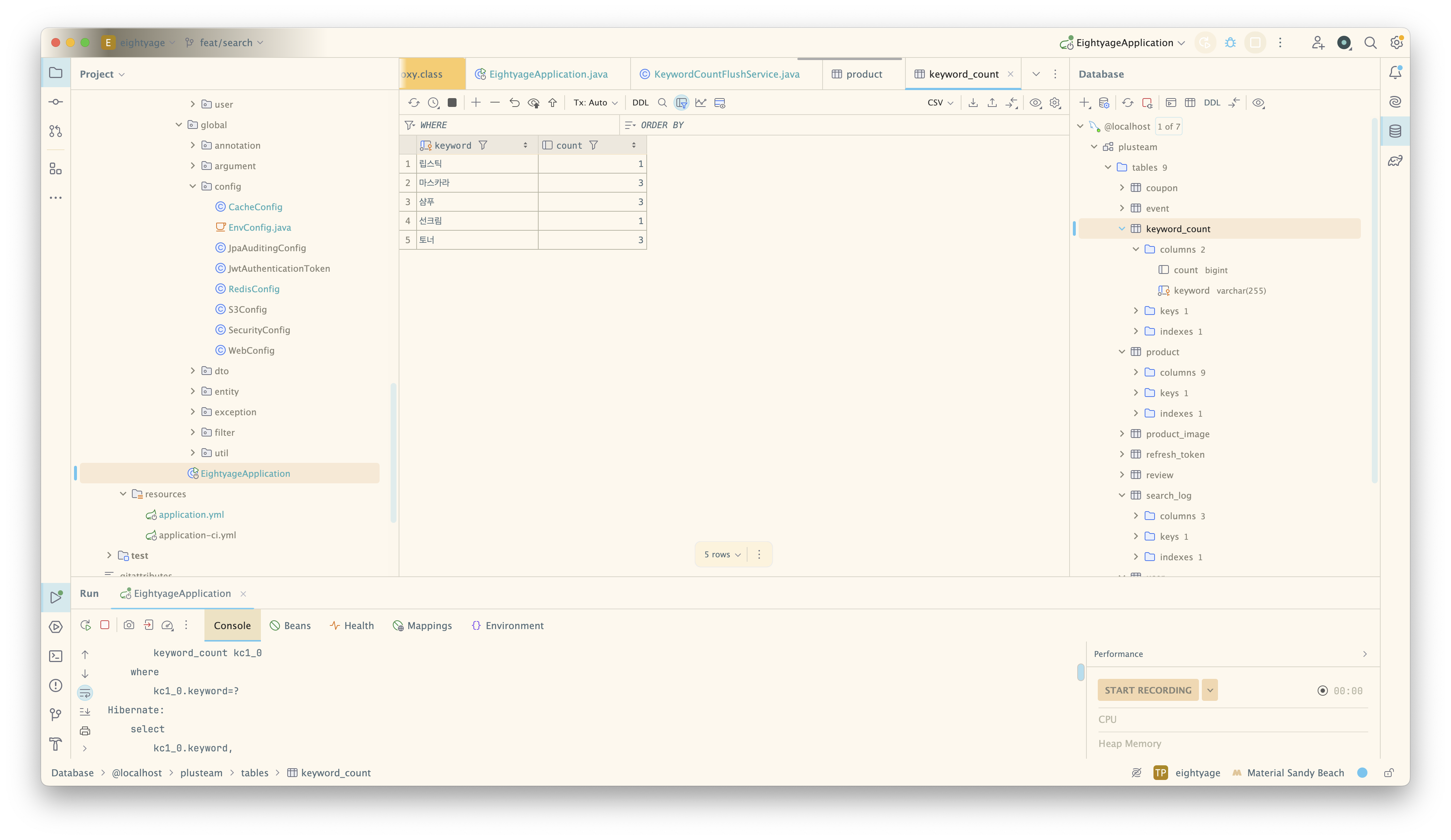 캐시 값도 남아있고, DB(keyword_count 테이블)에 저장되지 않는 문제가 발생하였다.