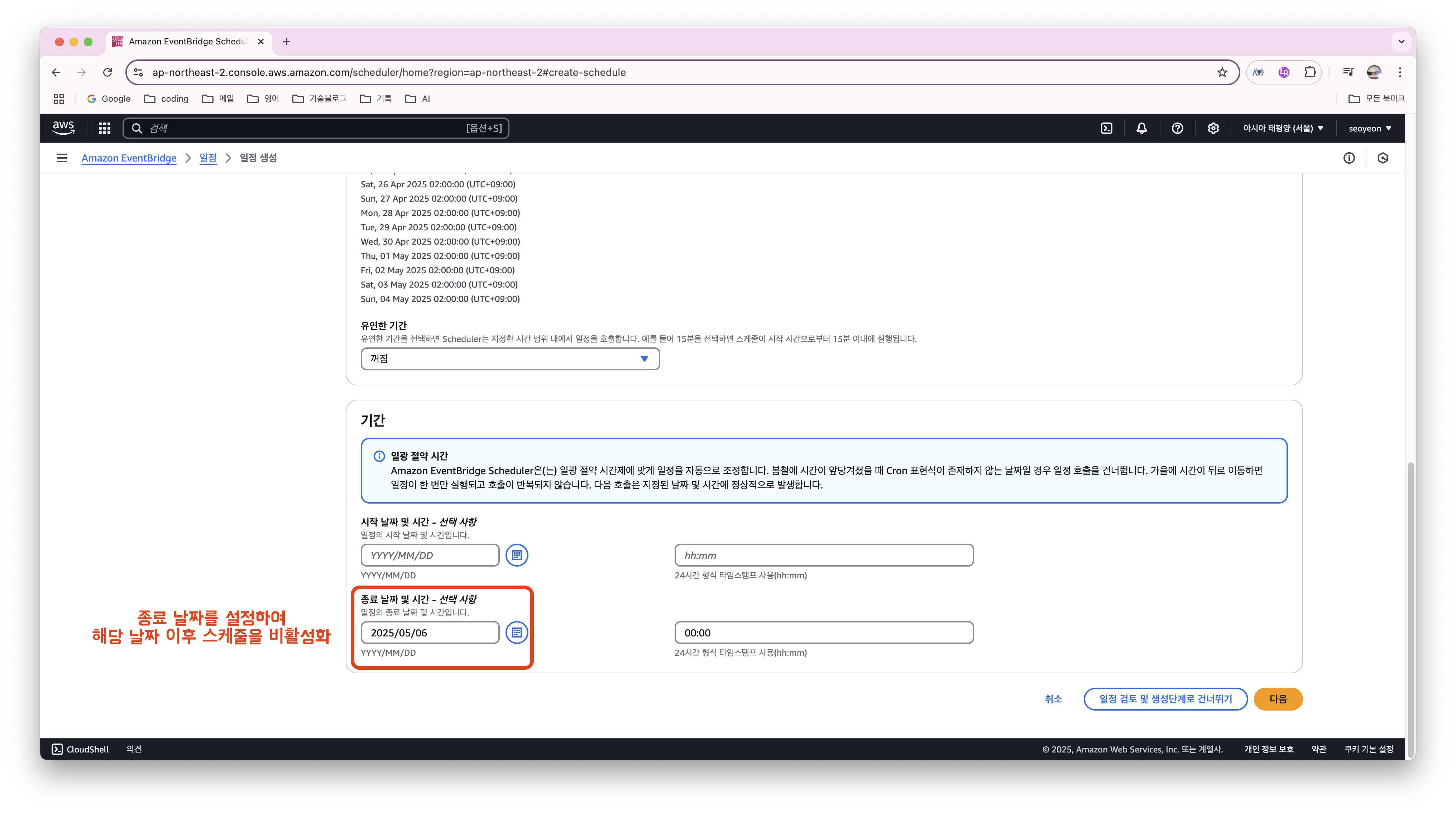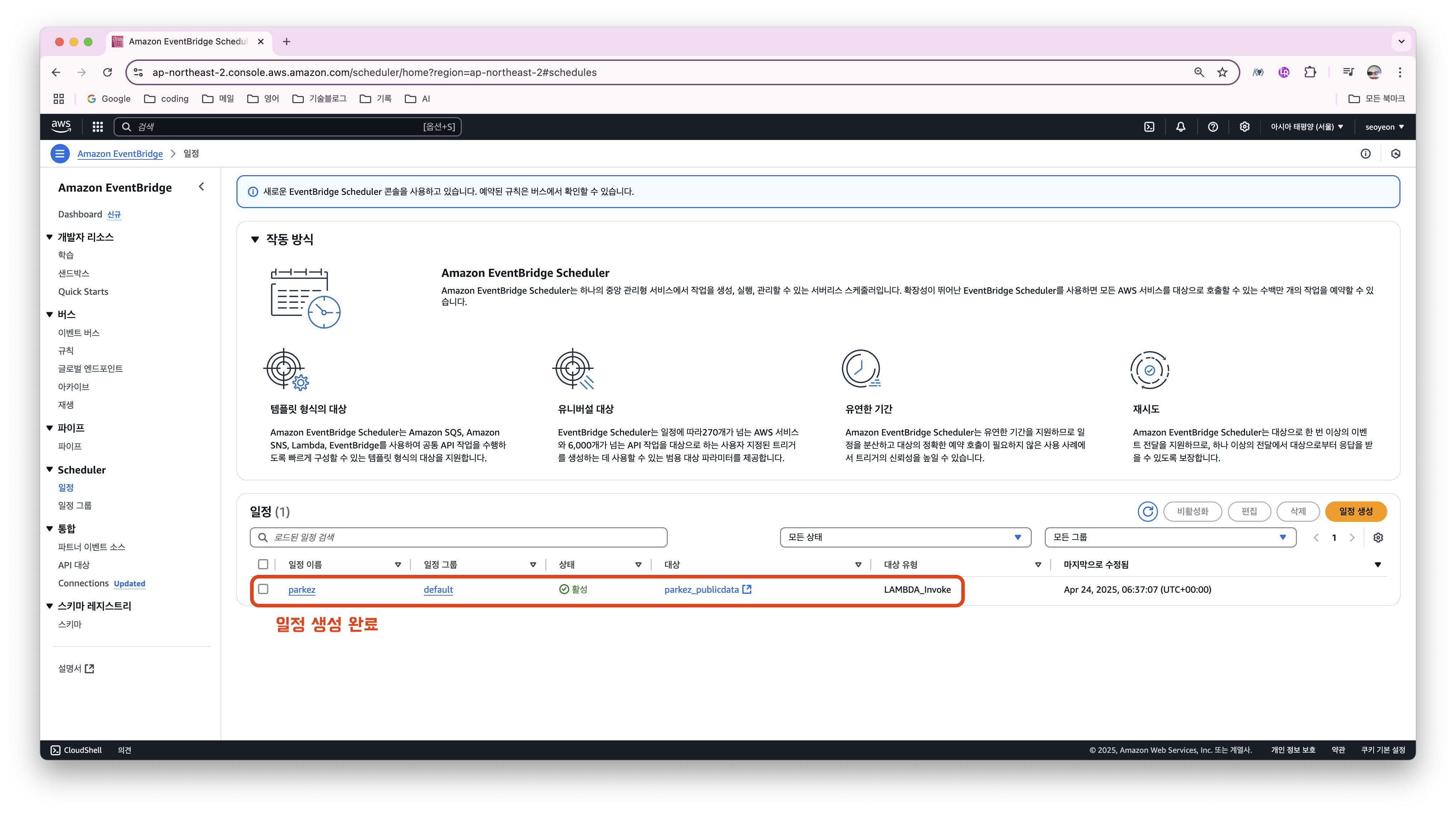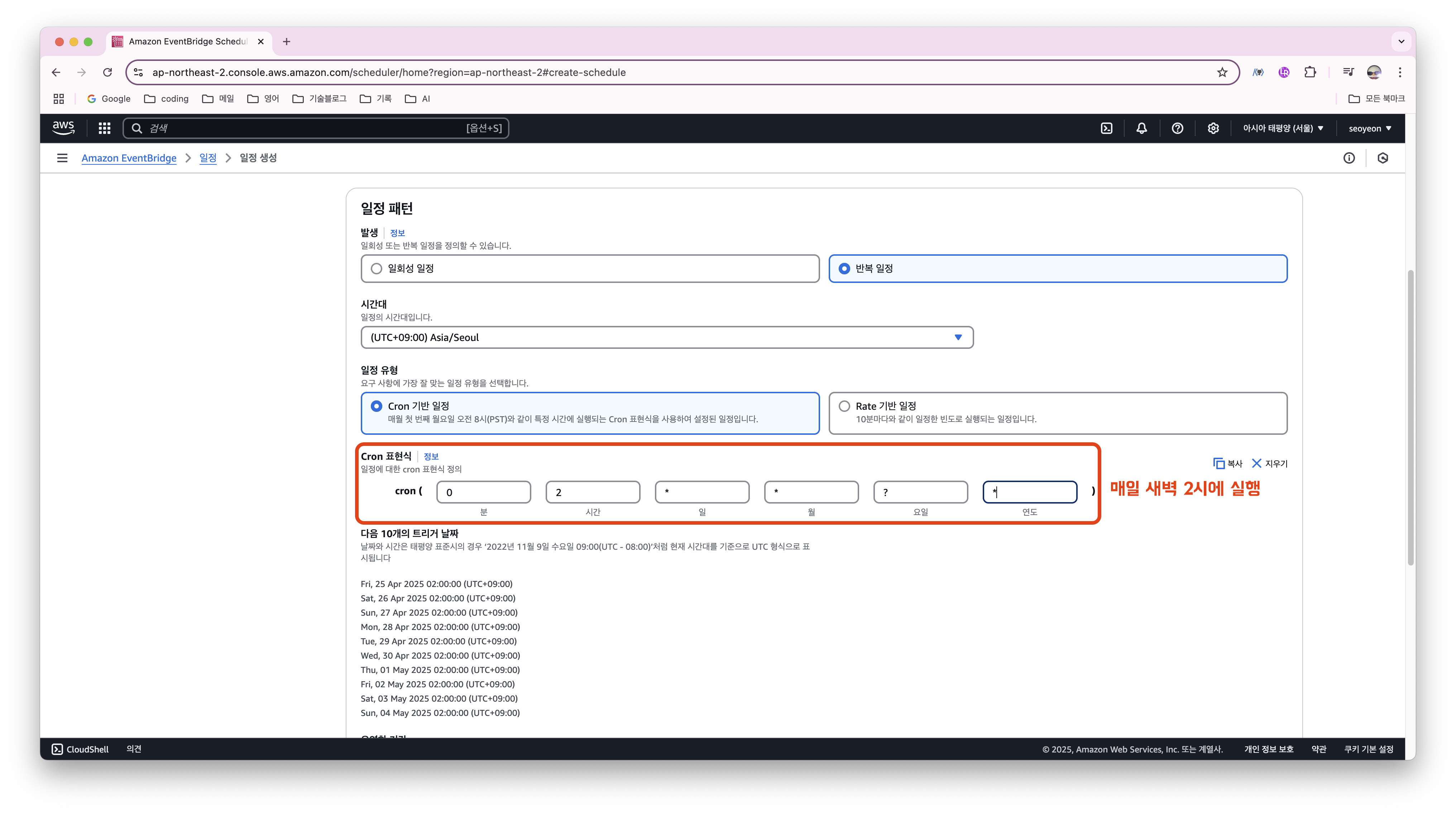 특히 이번 프로젝트처럼 주기적인 작업을 설정할 때는 cron이나 rate 표현식을 사용하여 원하는 시간마다