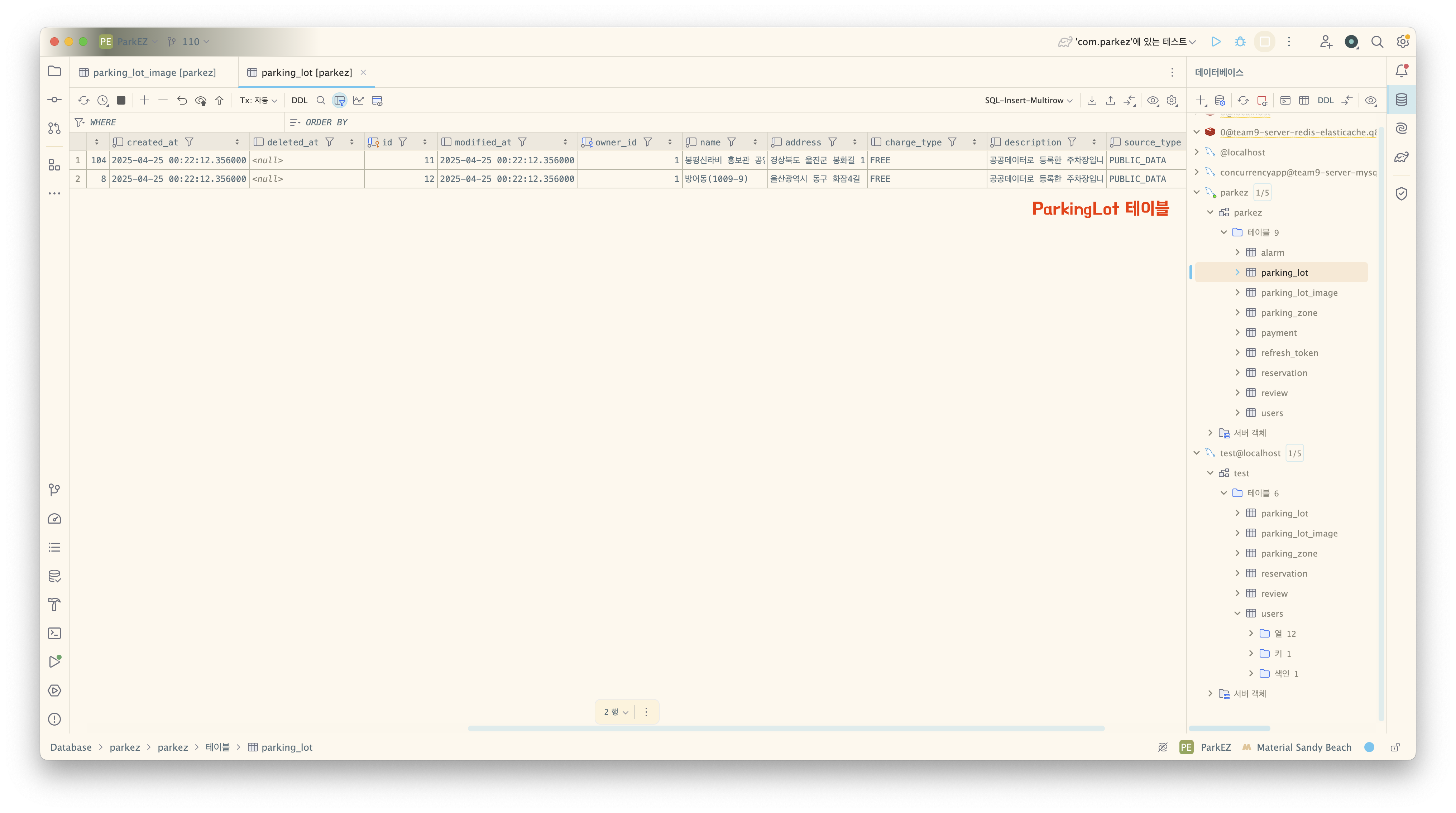 RDS에 공공데이터가 잘 저장된 것을 확인하였다.